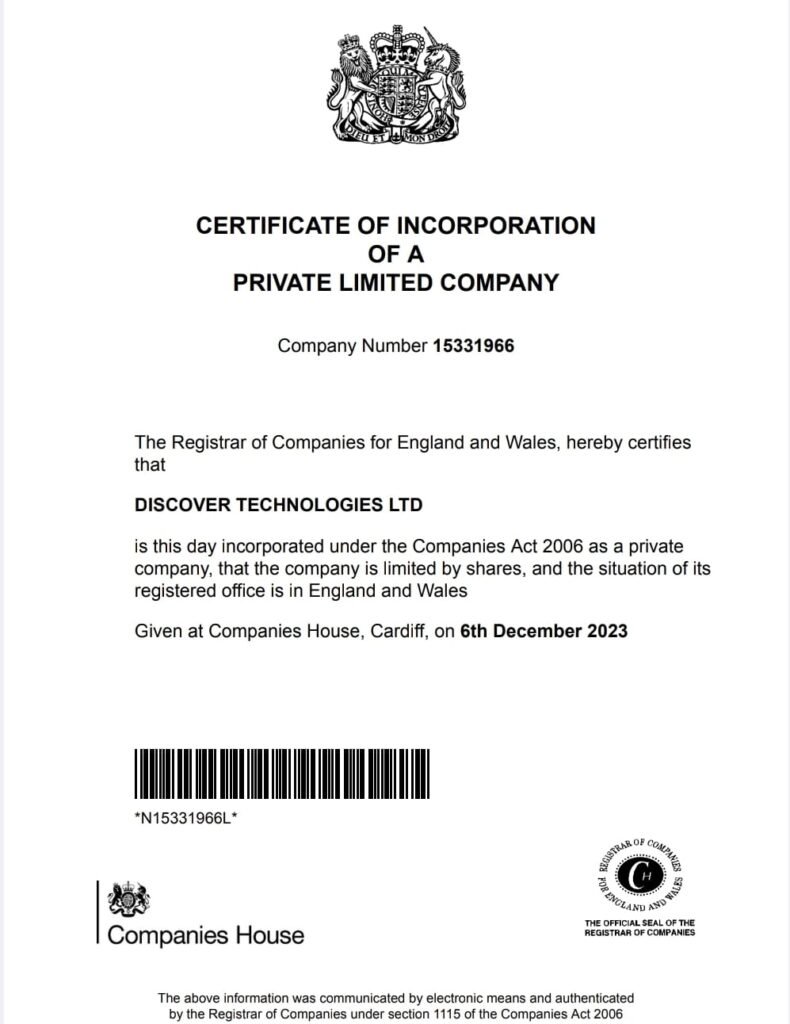 UK REGISTRATION CERTIFICATE